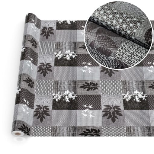 Wachstuch Tischdecke Rollenware Wachstuch Meterware 20m Rankenmuster Uni Grau - E04420