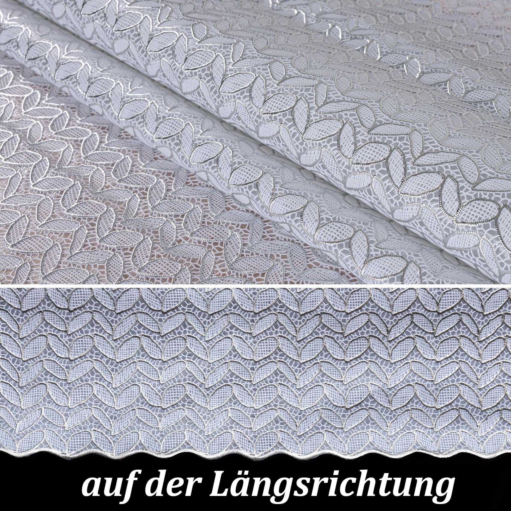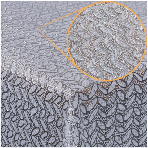 Lace Vinyl Tischdecke abwaschbar Meterware 20m Blätterchen Silber TR512WL