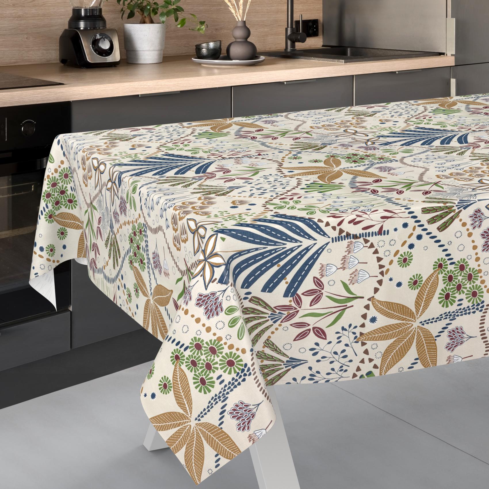 Die hochwertige Wachstuchtischdecke verfügt über eine edel geprägte Oberfläche mit textilem Charakter, die das lebendige Ethno-Muster besonders zur Geltung bringt. Dank Acrylbeschichtung und Lotuseffekt ist die abwaschbare Tischdecke besonders pflegeleicht – Verschmutzungen lassen sich einfach mit einem feuchten Tuch entfernen. Die wetterfeste Ausführung macht sie auch als Gartentischdecke zur optimalen Wahl.