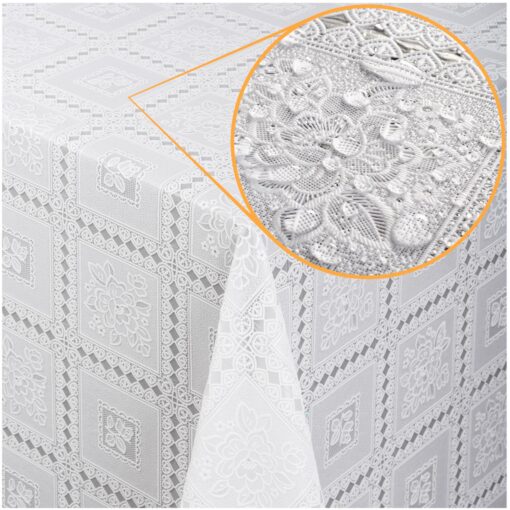 - das stilvolle 100% Vinyl Tischdecke Meterware mit Motiv Häkelspitze Spitzenoptik