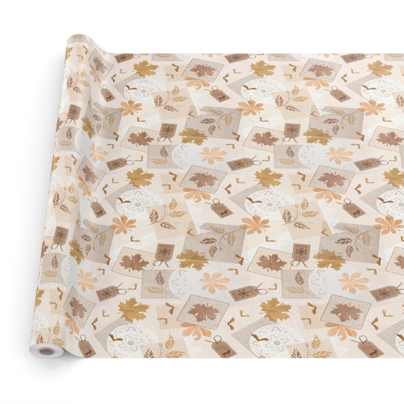 Wachstischdecke Meterware 140 cm x 20 m | Rustikaler Herbst- Look