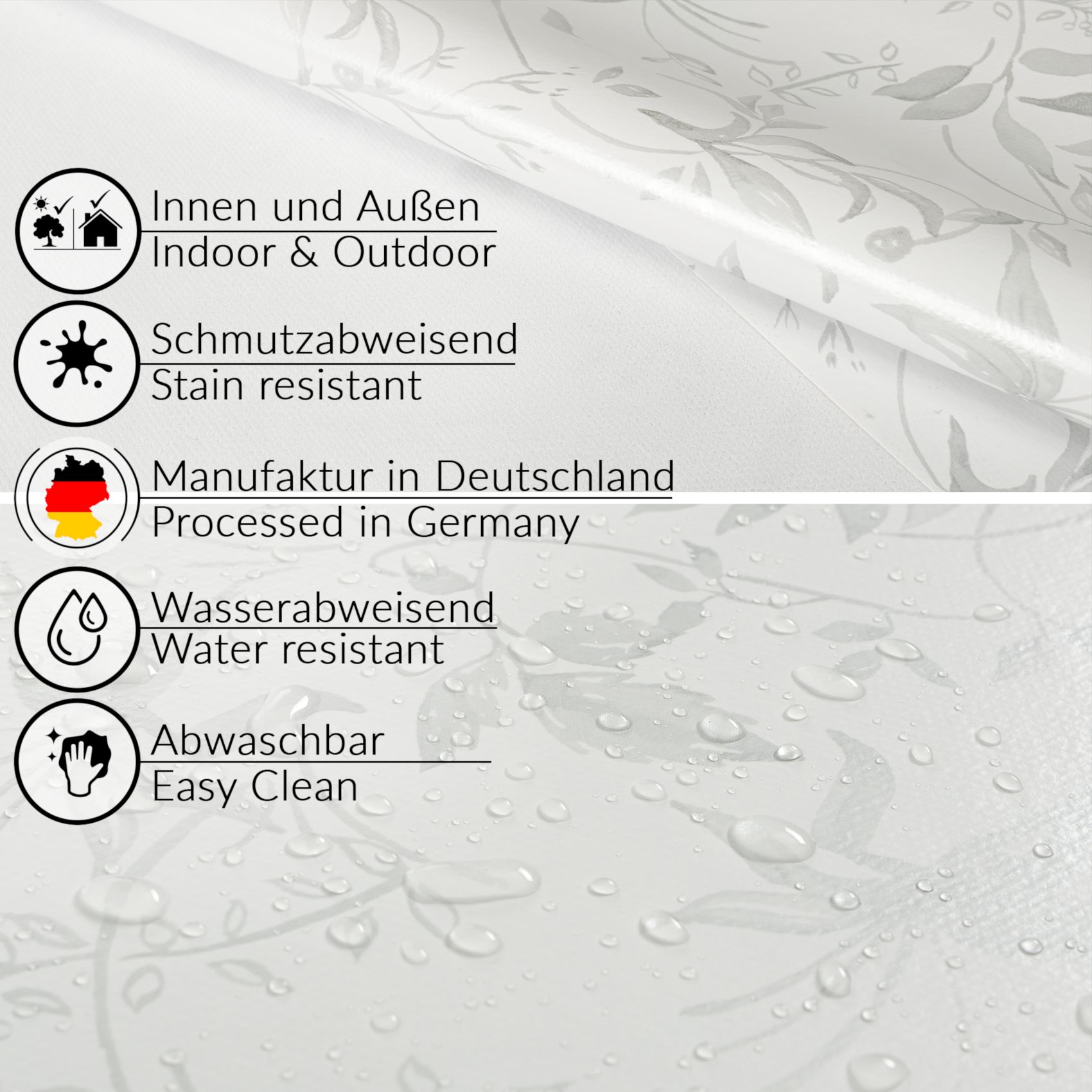 Vorteile der abwaschbaren Tischdecke in Meterware auf einem Blick: