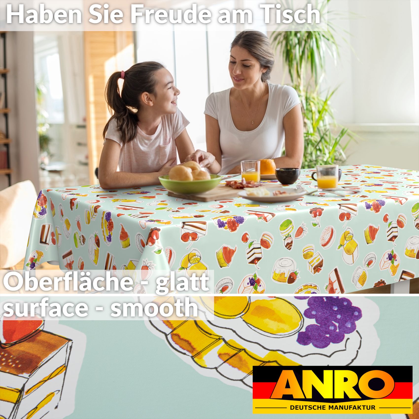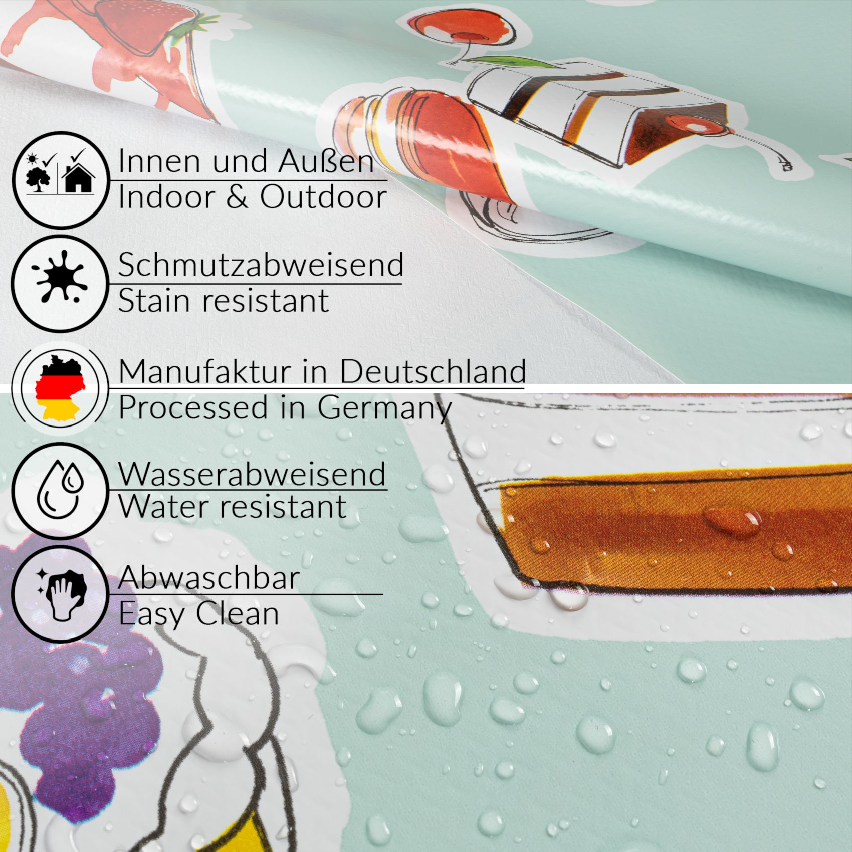 Vorteile der abwaschbaren Tischdecke in Meterware auf einem Blick: