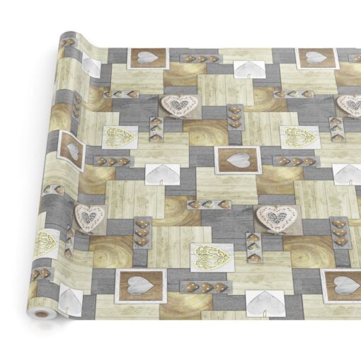 Wachstuch Tischdecke Wachstischdecke abwaschbare Tischdecke Wachstuch Meterware Gartentischdecke Holz Patchwork Grau Meterware