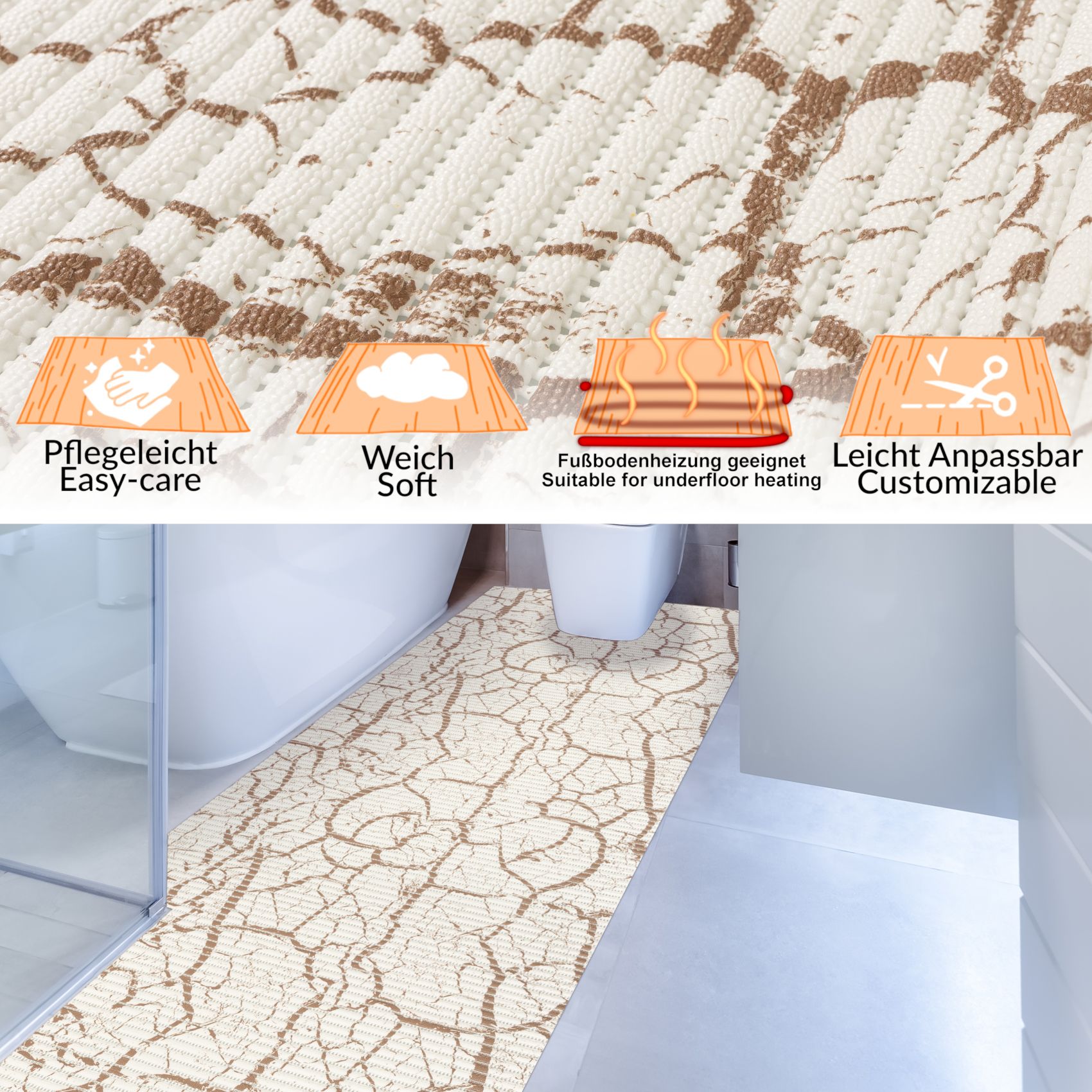 Die Badematte erweist sich aufgrund ihrer flexiblen Beschaffenheit zudem als äußerst anpassungsfähig. Mittels einer handelsüblichen Schere ist es kinderleicht, die Matte auf die gewünschte Größe zuzuschneiden. So kann sie perfekt an die individuellen Bedürfnisse angepasst werden und sorgt für höchsten Komfort im Badezimmer.