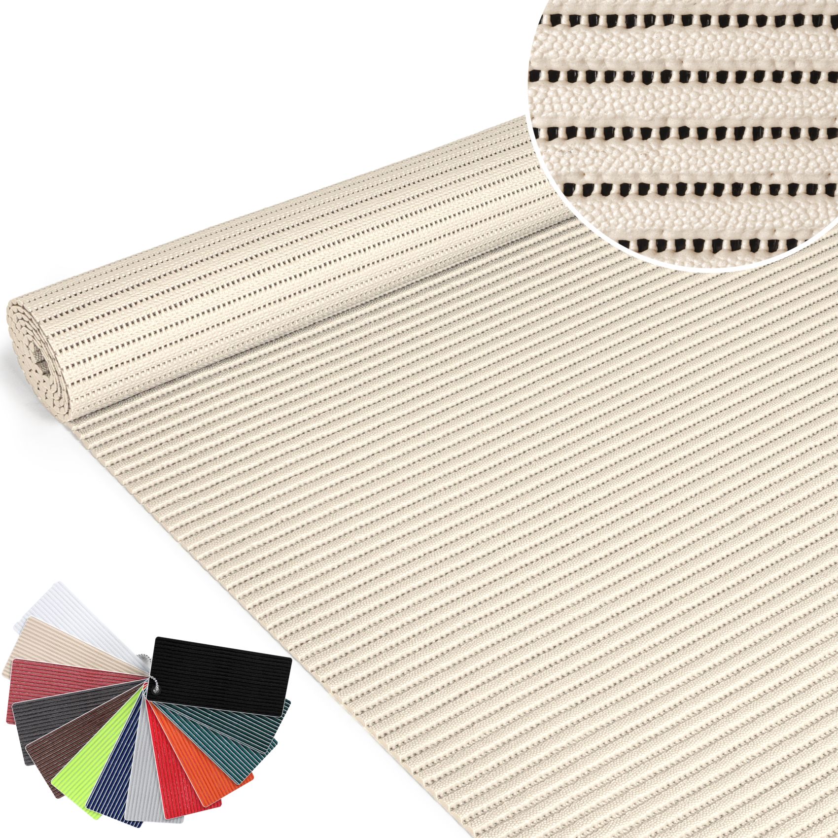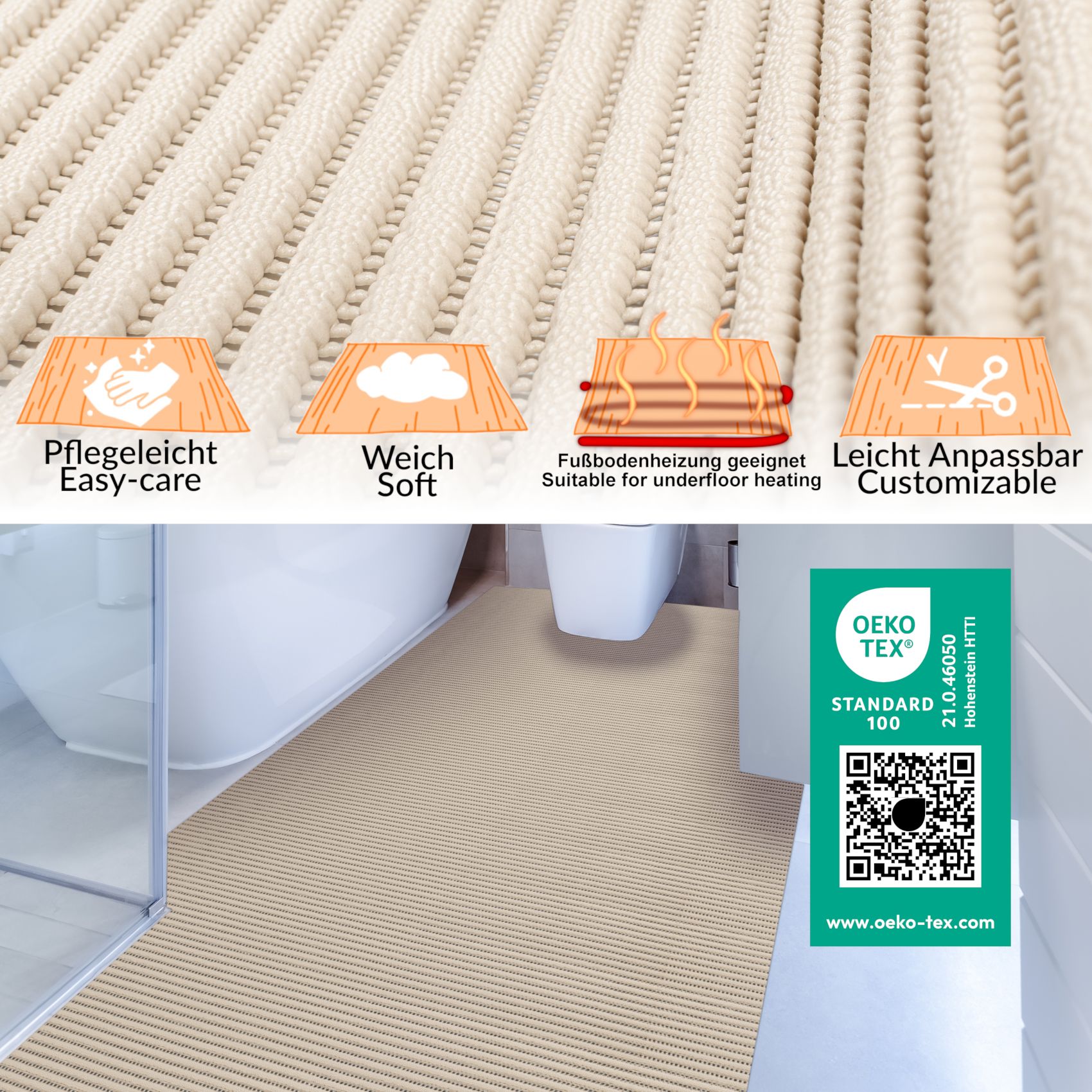 Der Badvorleger ermöglicht Ihnen eine individuelle Anpassung an Ihre Räumlichkeiten, indem Sie diese ganz einfach zuschneiden und auf die gewünschte Größe bringen können. Somit ist sie auch für größere Flächen geeignet und kann problemlos an jede Raumsituation angepasst werden. Nutzen Sie unsere rutschfeste Weichschaummatte in Meterware für Ihre Büroräume, Küchen oder auch für den Einsatz in der Sauna oder auf der Terrasse. Sie werden von ihrer hohen Qualität und Vielseitigkeit begeistert sein.