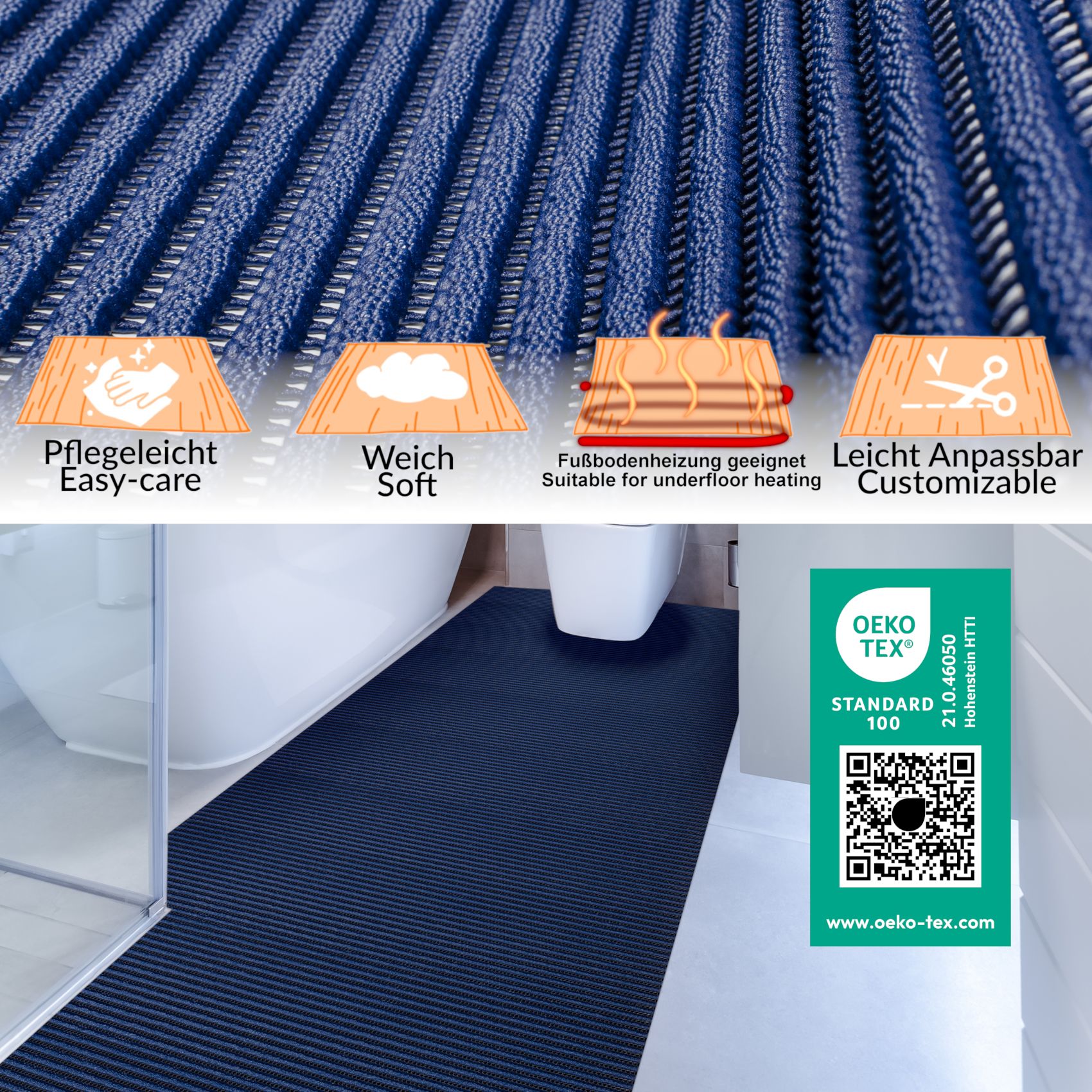 Der Badvorleger ermöglicht Ihnen eine individuelle Anpassung an Ihre Räumlichkeiten, indem Sie diese ganz einfach zuschneiden und auf die gewünschte Größe bringen können. Somit ist sie auch für größere Flächen geeignet und kann problemlos an jede Raumsituation angepasst werden. Nutzen Sie unsere rutschfeste Weichschaummatte in Meterware für Ihre Büroräume, Küchen oder auch für den Einsatz in der Sauna oder auf der Terrasse. Sie werden von ihrer hohen Qualität und Vielseitigkeit begeistert sein.