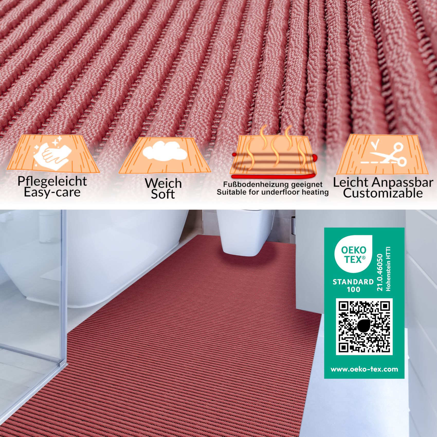 Der Badvorleger ermöglicht Ihnen eine individuelle Anpassung an Ihre Räumlichkeiten, indem Sie diese ganz einfach zuschneiden und auf die gewünschte Größe bringen können. Somit ist sie auch für größere Flächen geeignet und kann problemlos an jede Raumsituation angepasst werden. Nutzen Sie unsere rutschfeste Weichschaummatte in Meterware für Ihre Büroräume, Küchen oder auch für den Einsatz in der Sauna oder auf der Terrasse. Sie werden von ihrer hohen Qualität und Vielseitigkeit begeistert sein.
