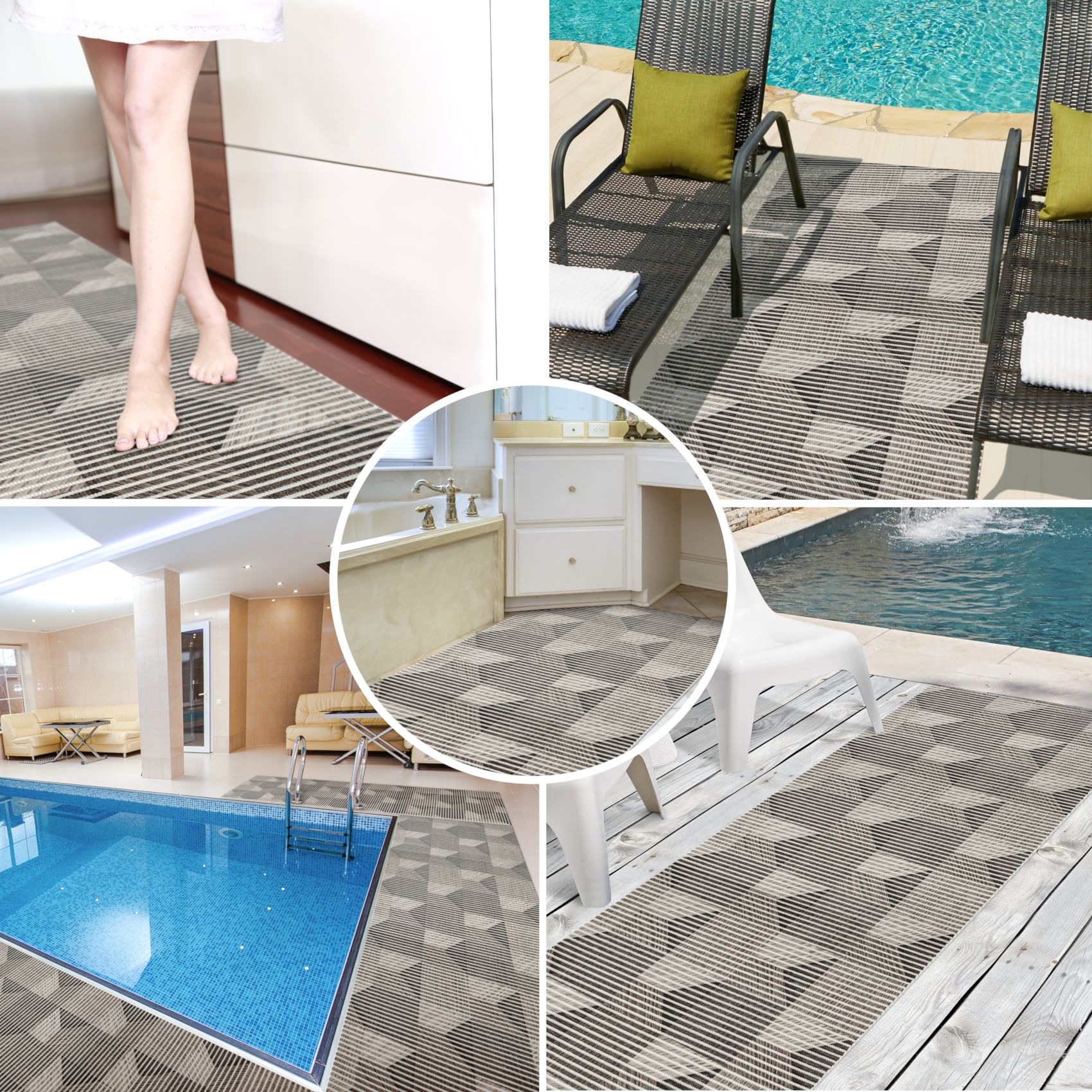 Der Badvorleger ermöglicht Ihnen eine individuelle Anpassung an Ihre Räumlichkeiten, indem Sie diese ganz einfach zuschneiden und auf die gewünschte Größe bringen können. Somit ist sie auch für größere Flächen geeignet und kann problemlos an jede Raumsituation angepasst werden. Nutzen Sie unsere rutschfeste Weichschaummatte in Meterware für Ihre Büroräume, Küchen oder auch für den Einsatz in der Sauna oder auf der Terrasse. Sie werden von ihrer hohen Qualität und Vielseitigkeit begeistert sein.