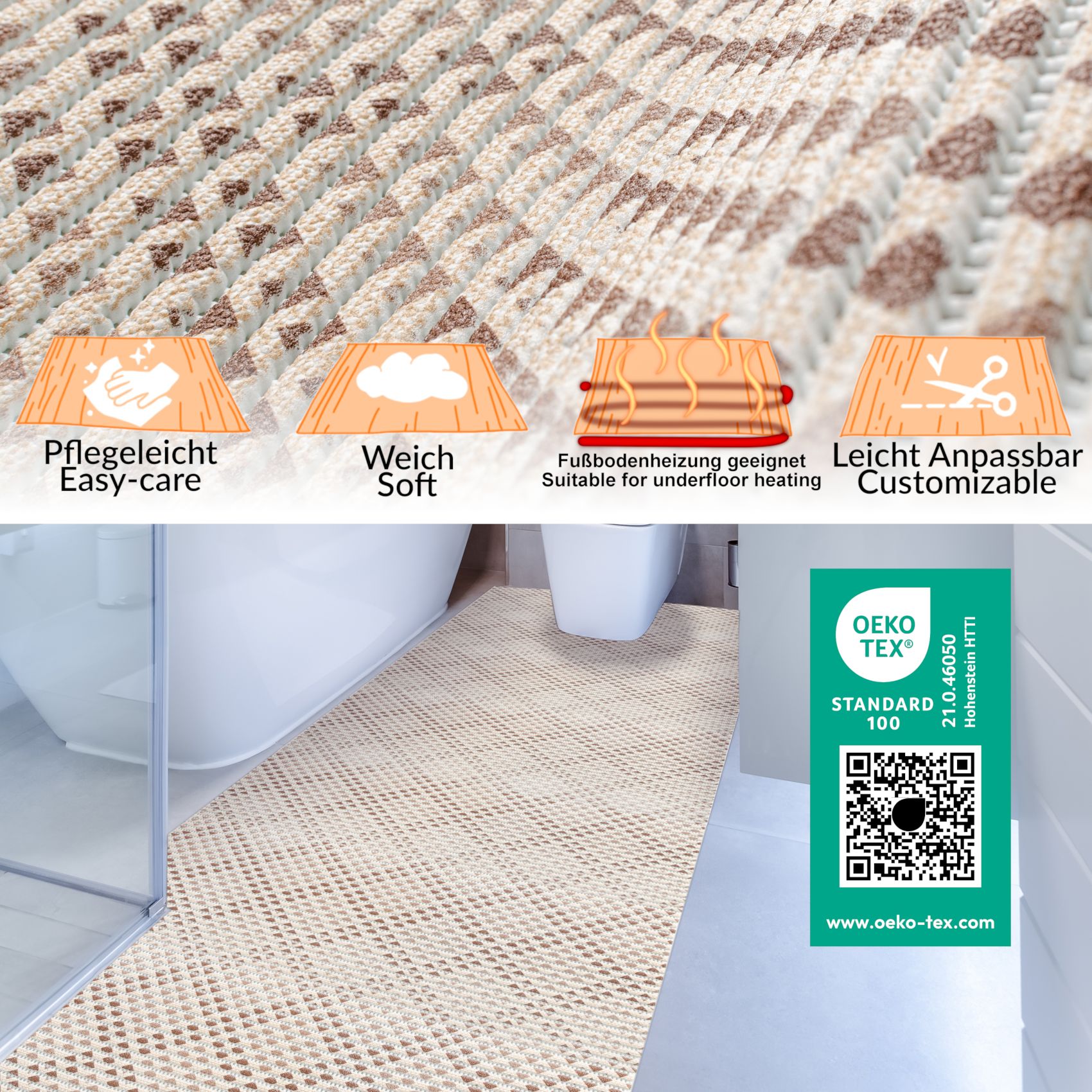Der Badvorleger ermöglicht Ihnen eine individuelle Anpassung an Ihre Räumlichkeiten, indem Sie diese ganz einfach zuschneiden und auf die gewünschte Größe bringen können. Somit ist sie auch für größere Flächen geeignet und kann problemlos an jede Raumsituation angepasst werden. Nutzen Sie unsere rutschfeste Weichschaummatte in Meterware für Ihre Büroräume, Küchen oder auch für den Einsatz in der Sauna oder auf der Terrasse. Sie werden von ihrer hohen Qualität und Vielseitigkeit begeistert sein.
